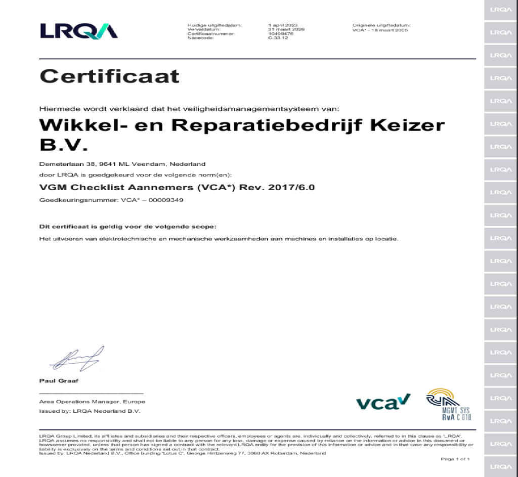 NEN-ISO & VCA Certificering β Kwaliteit en Veiligheid bij Wikkelbedrijf Keizer*